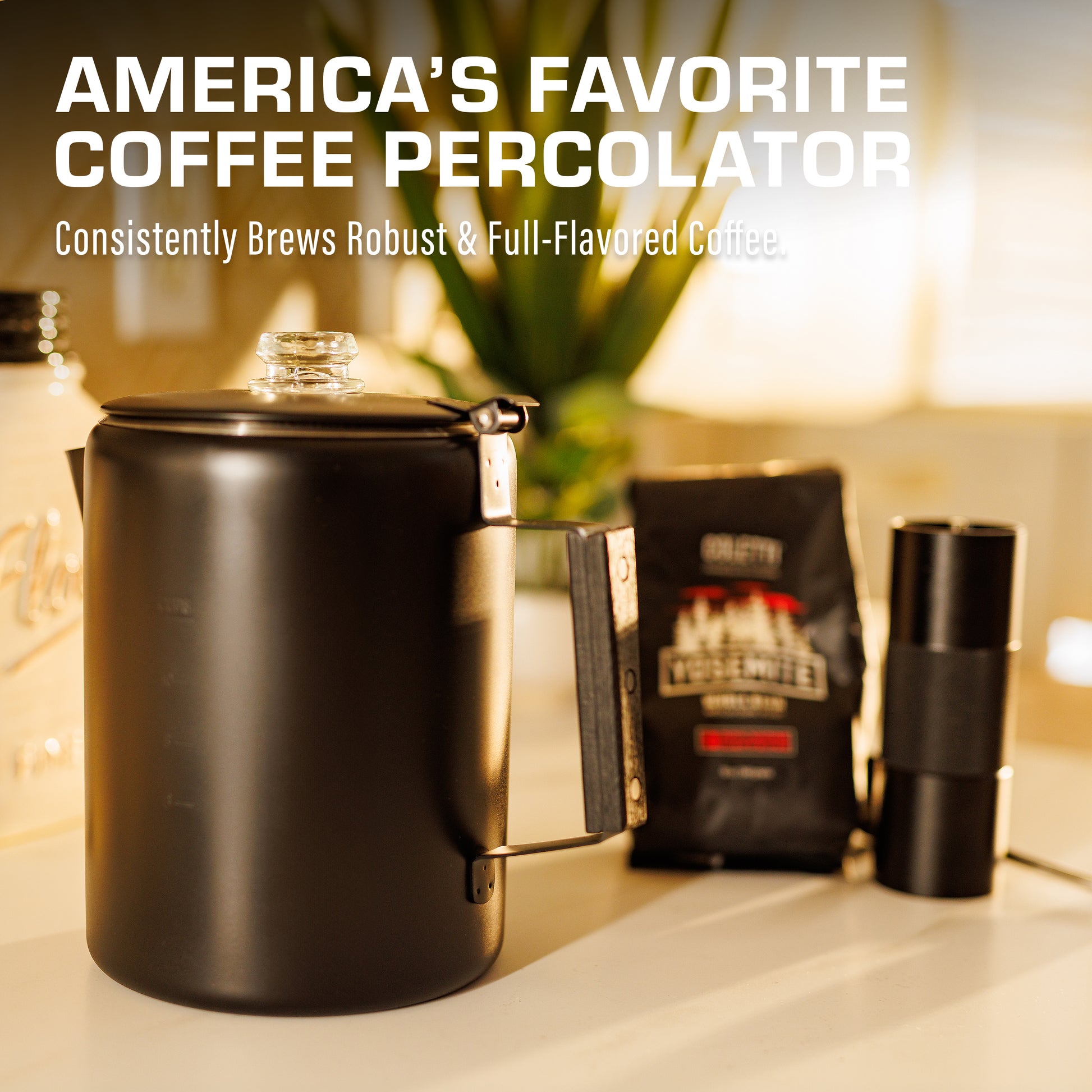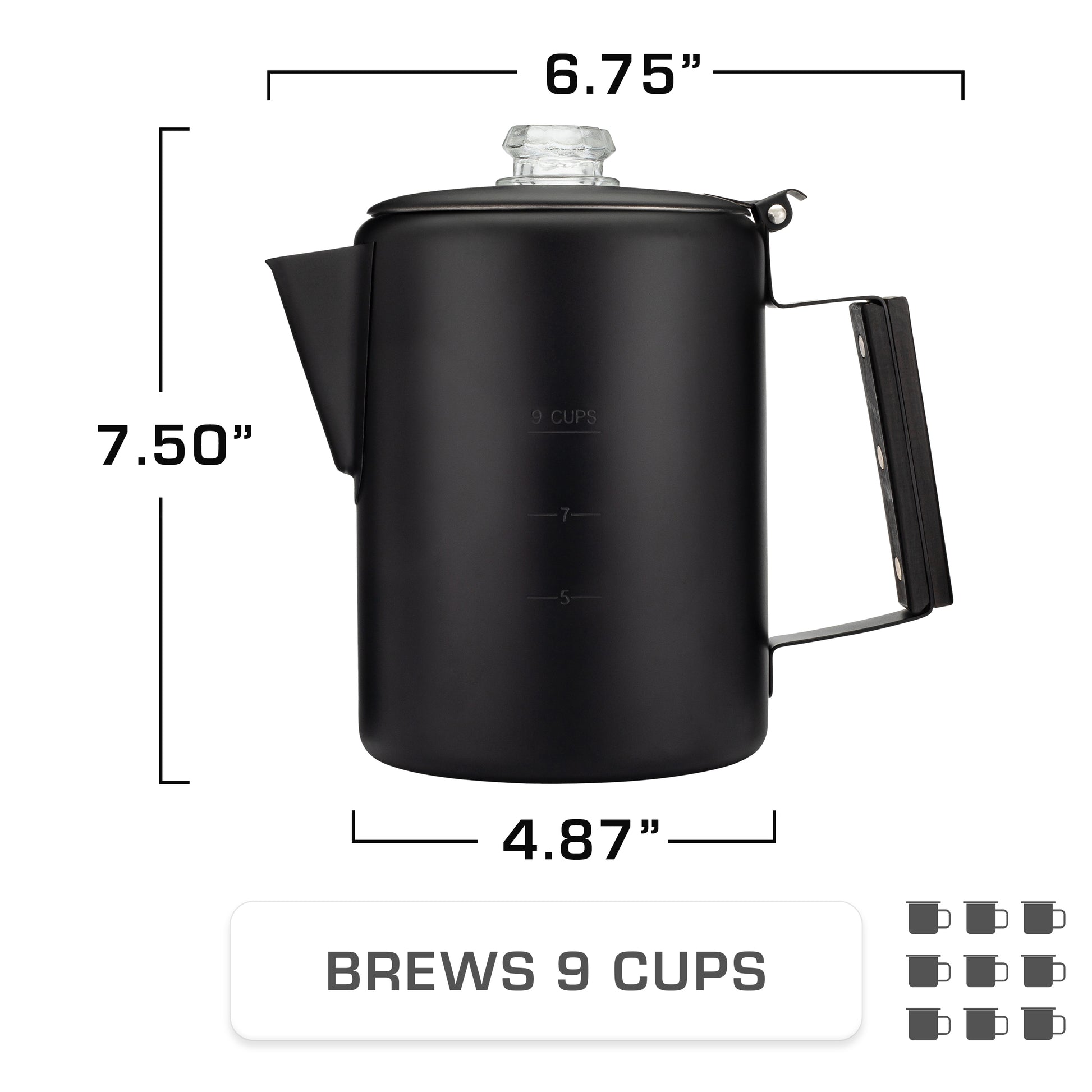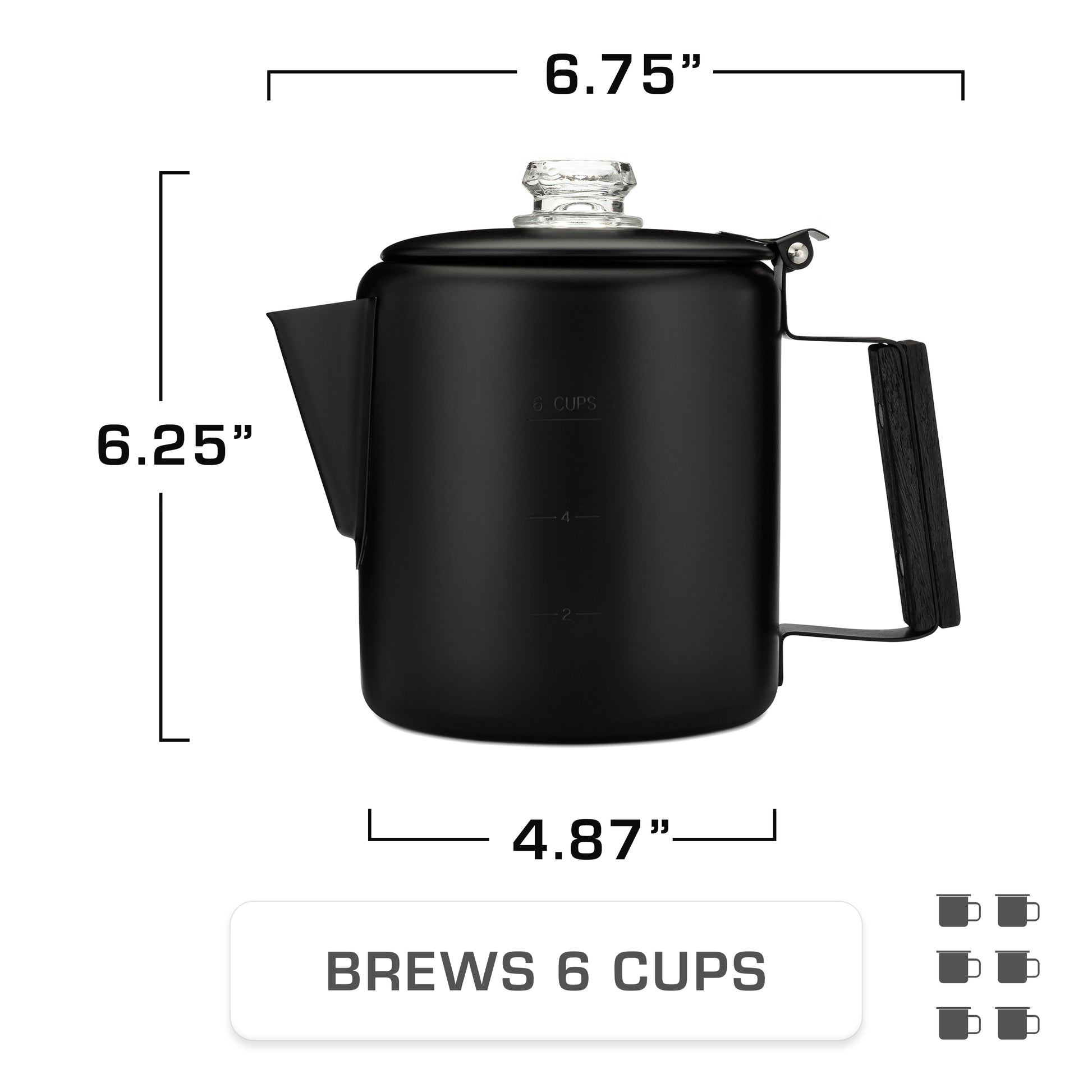 - PROTECTIVE BLACK COATING — We coated an already sturdy & durable percolator to make our sleekest looking coffee maker yet. Brew in style and make your bold camping coffee in something really cool lookin’