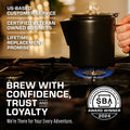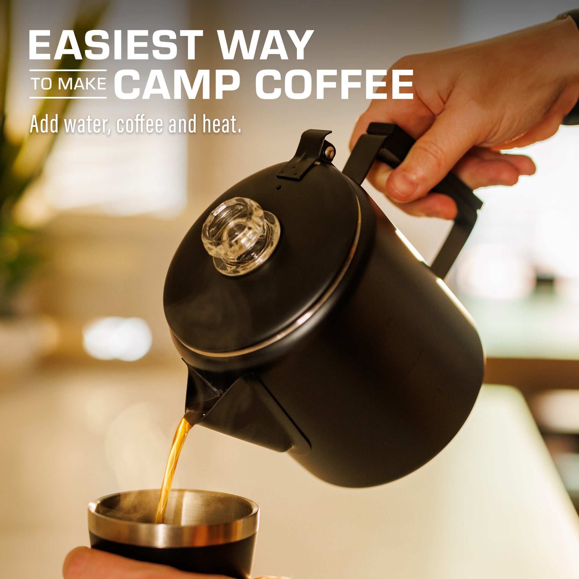 - BUILT TOUGH FOR THE OUTDOORS – The fire crackles, the morning air is crisp, and the smell of fresh coffee drifts through camp. This is how the day begins. Whether you're brewing in the mountains or at home, this stove top coffee maker keeps it simple—water, heat, and time. Designed for adventure, our camping coffee makers guarantee a satisfying, hot brew anywhere. A percolator coffee pot stovetop that works wherever the road takes you.