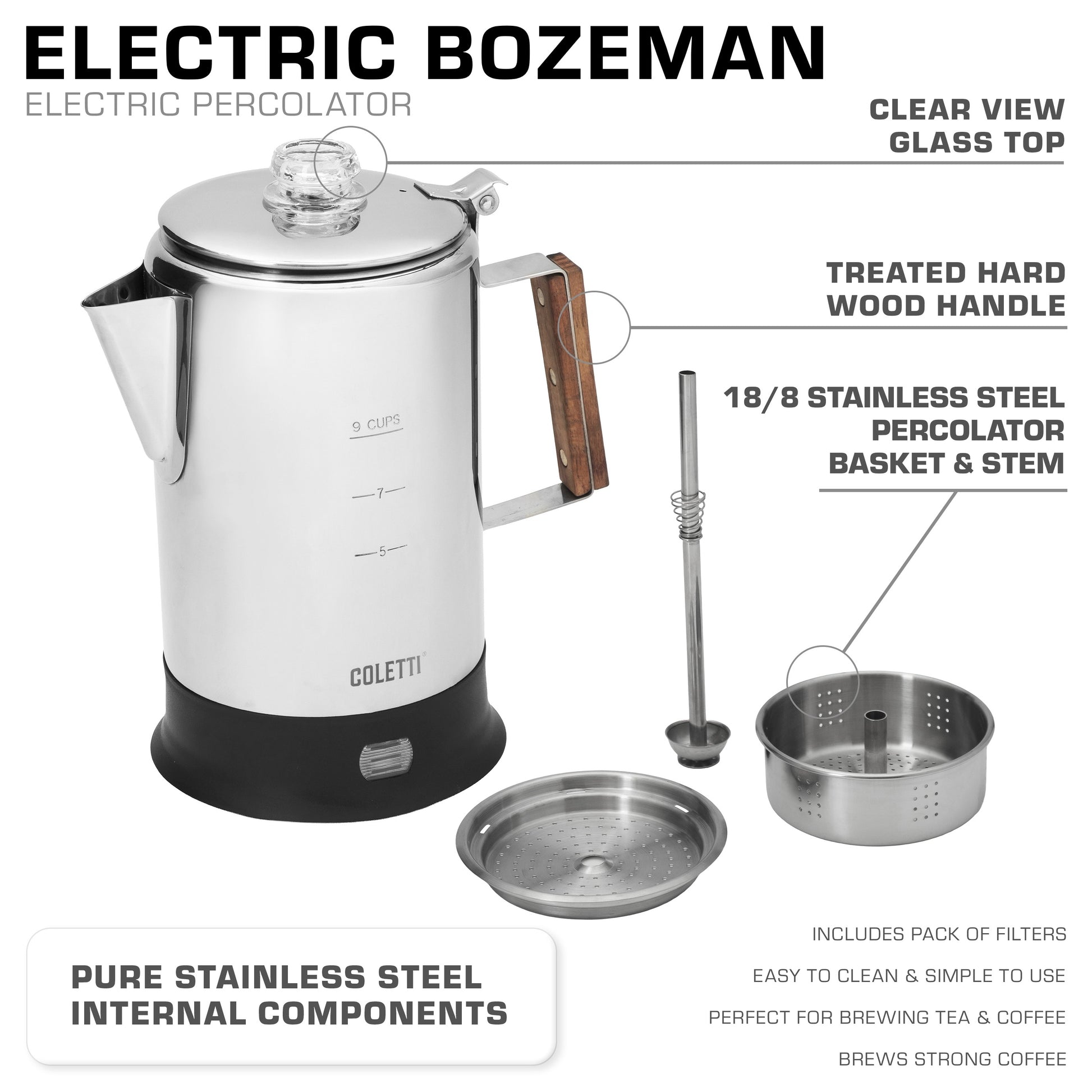 - SIMPLE TO USE — The coffee percolator is a time honored brewing technique that brews a bold pot of coffee. Many home baristas prefer the control a percolator coffee pot has on affecting the coffee’s strength when compared to traditional drip coffee methods. Our electric percolator coffee pot has the same timeless percolator shape that people have enjoyed for years—but now, with modern capabilities. Our Best Selling Percolator, Now Electric
