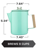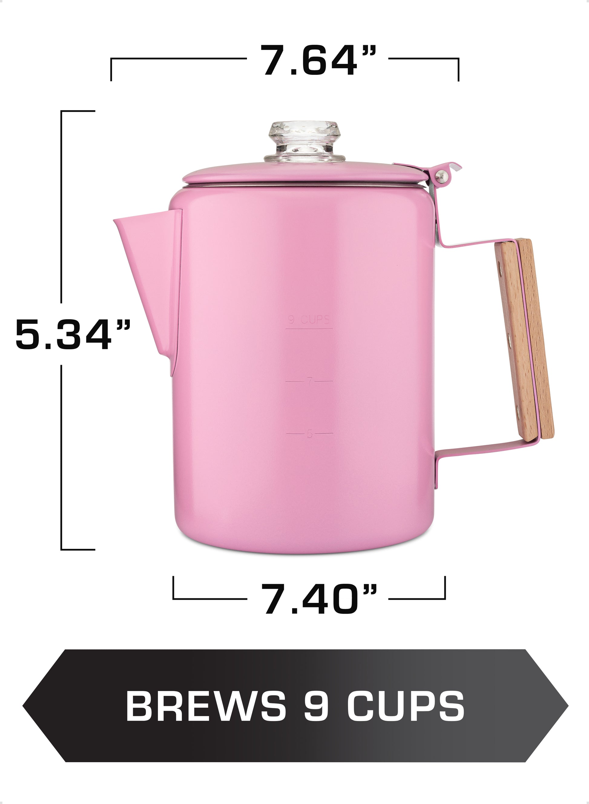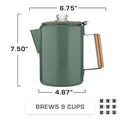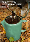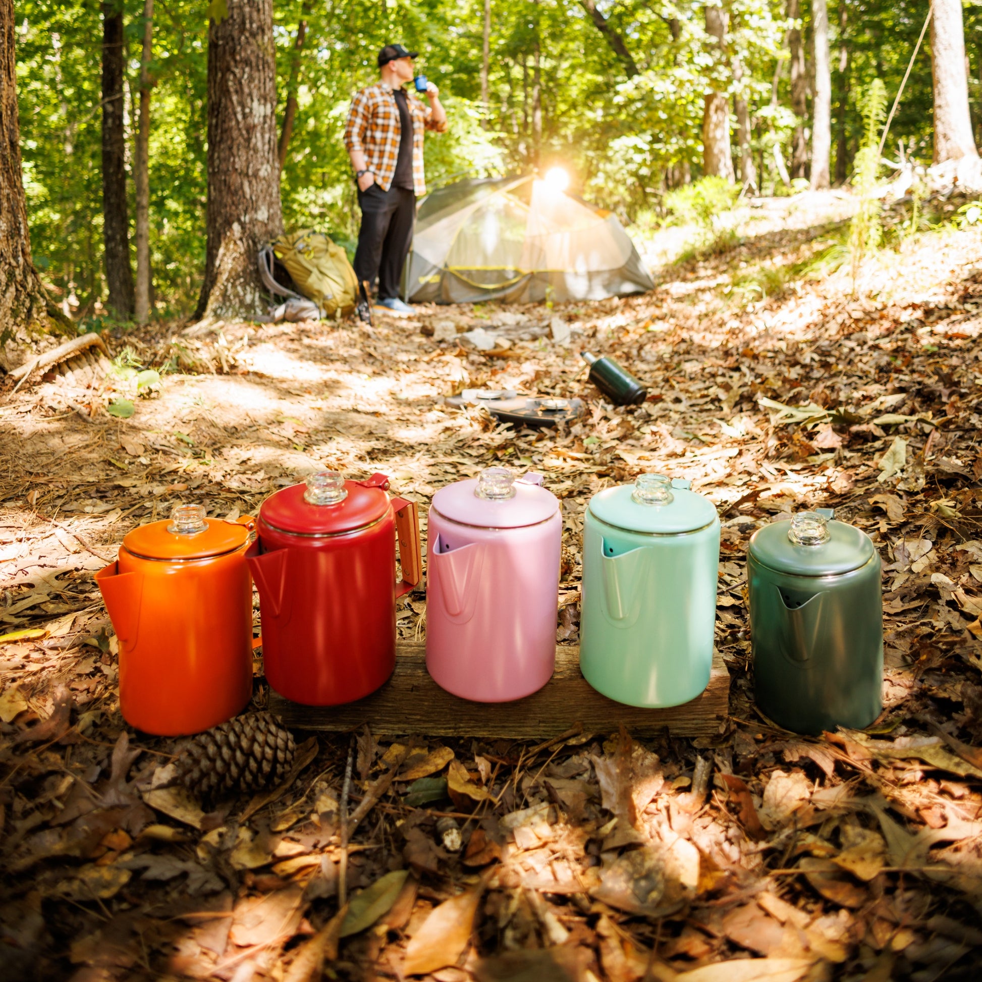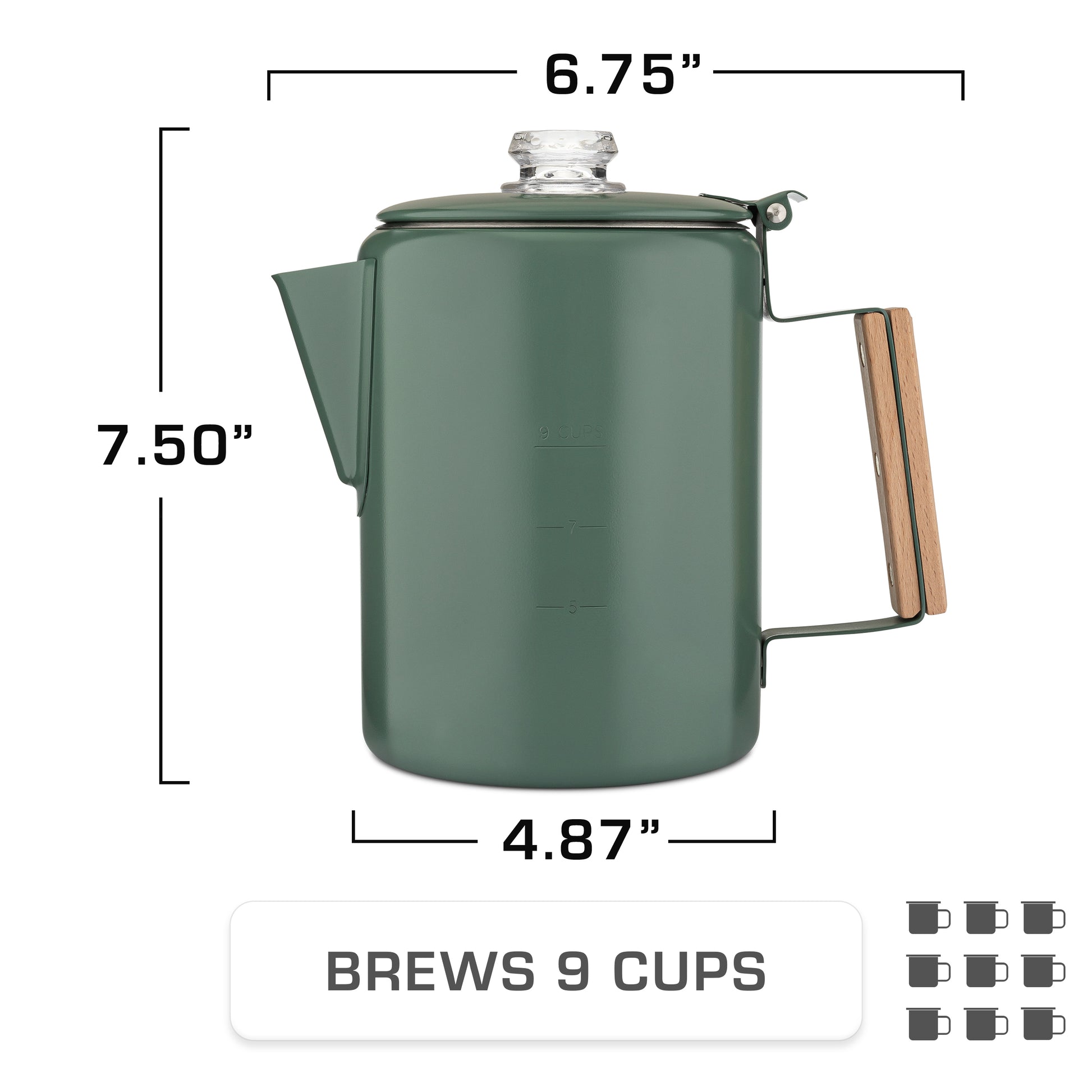 - PROTECTIVE GREEN COATING — We coated an already sturdy & durable percolator to make our sleekest looking coffee maker yet. Brew in style and make your bold camping coffee in something really cool lookin’