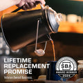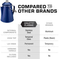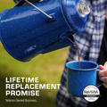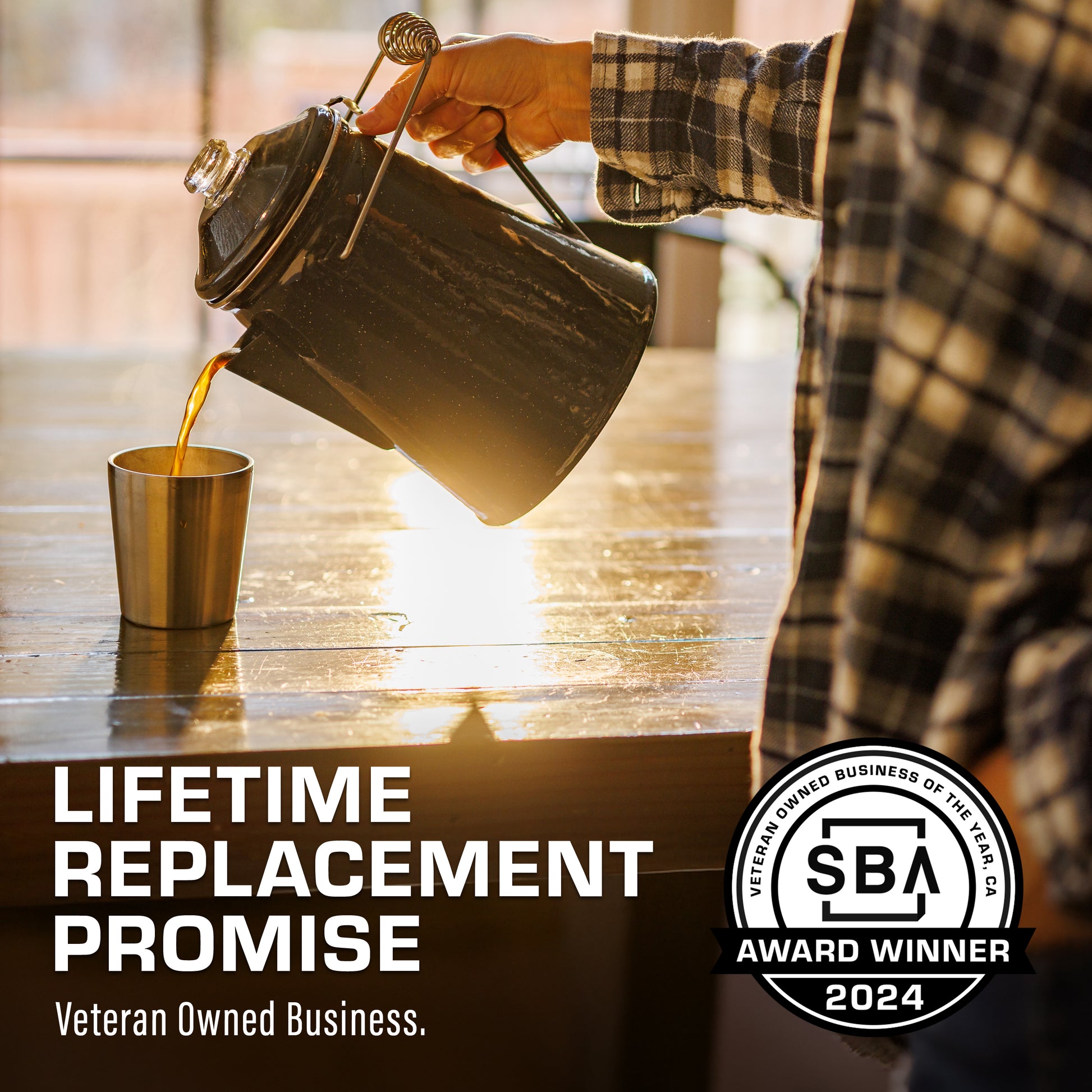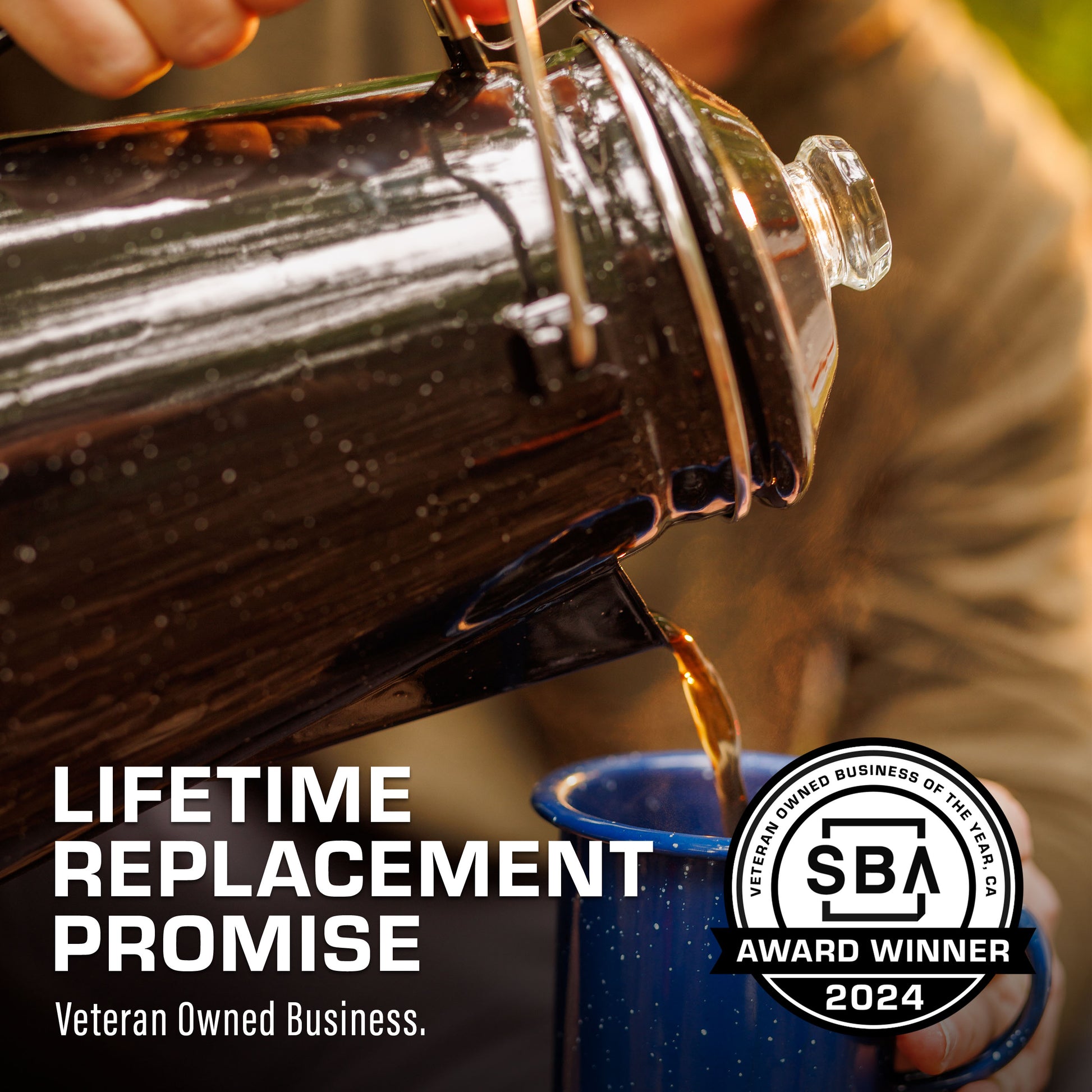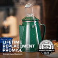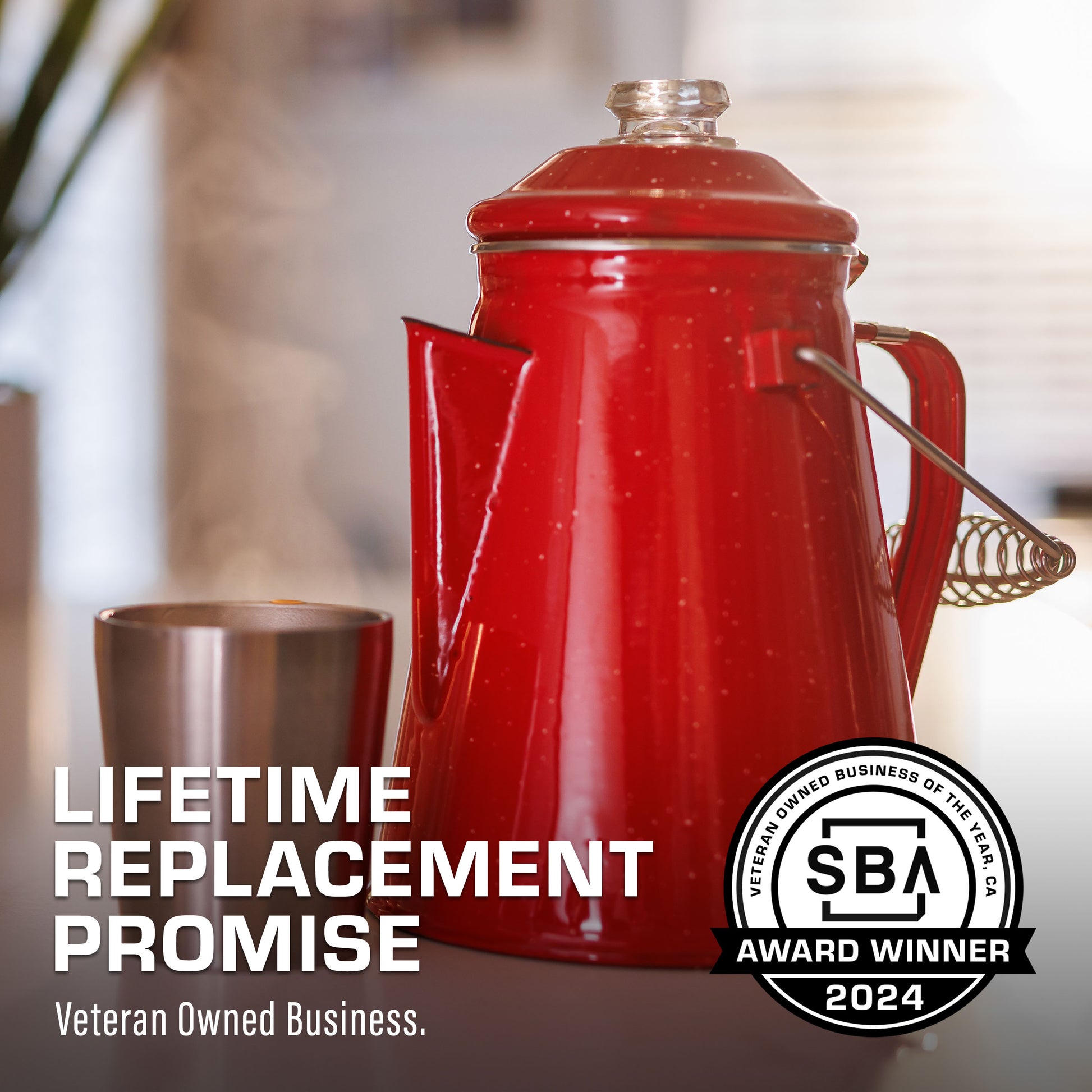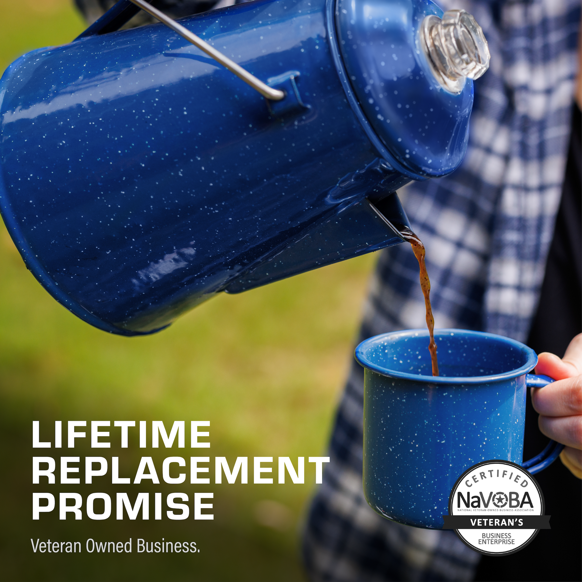 - LIFETIME REPLACEMENT PROMISE – Top materials & workmanship enable a superb promise. Shop with confidence. This is the last camping coffee pot you will ever need. US-based customer service provided by veterans