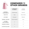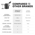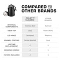 - NO ALUMINUM OR PLASTIC – Our 100% steel camping coffee makers are toxin free. A one-of-a-kind camping coffee pot, the COLETTI Classic has stainless steel internal components, an over-the-fire hanging handle, & a heat-toughened glass top. The ultimate in campfire cooking equipment