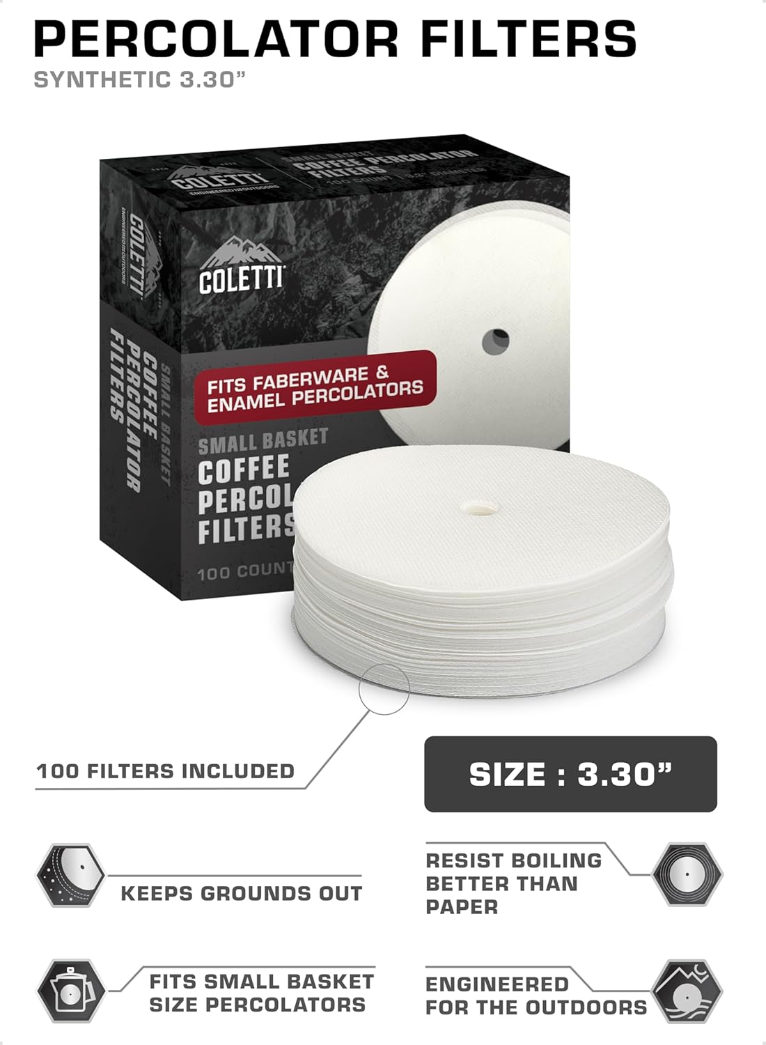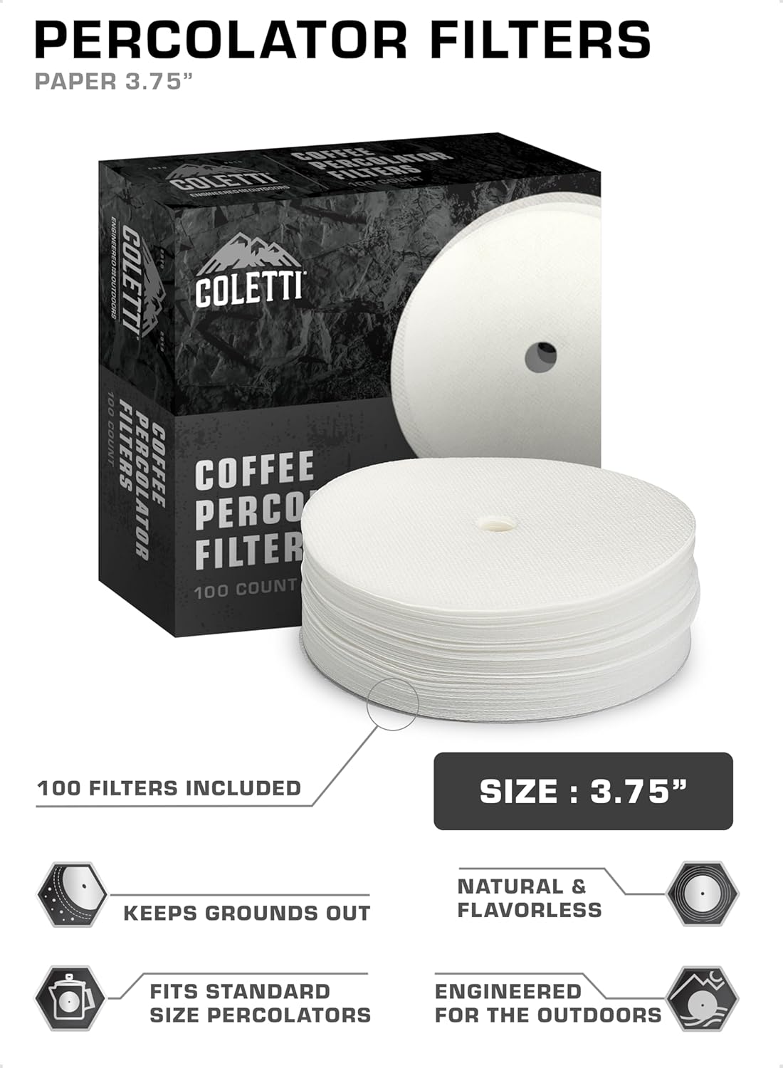 - MADE FOR CAMPERS: COLETTI is a camping brand through-n-through. A camping coffee filter should represent our collective values as nature lovers, our percolator filters pack light and are completely disposable
